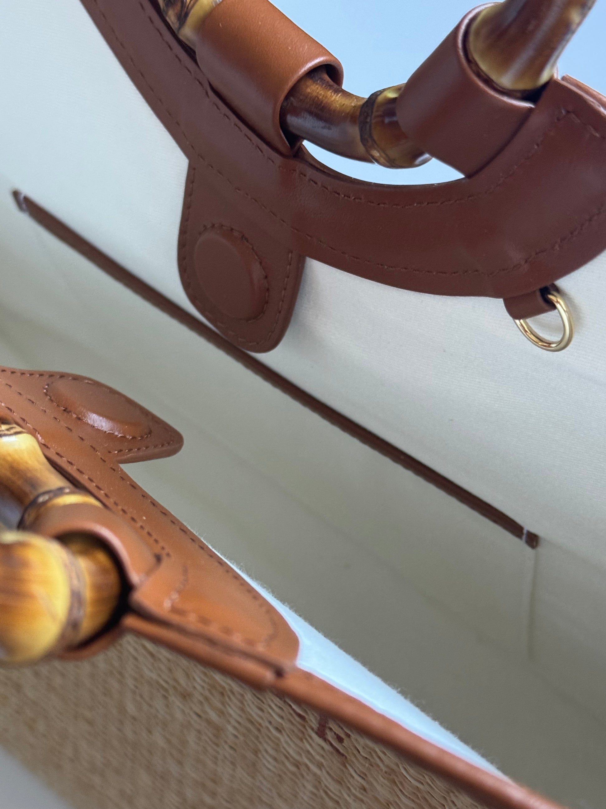 ✦ Natural raffia exterior with calf's leather trims